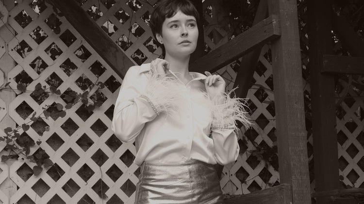 80's Nora Noh Black Pencil Dress, White Ruffle Collar US 6