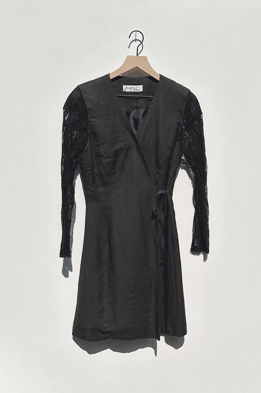 Black Linen & Lace Dress US 6, 80's Knee Length Jennifer Eden