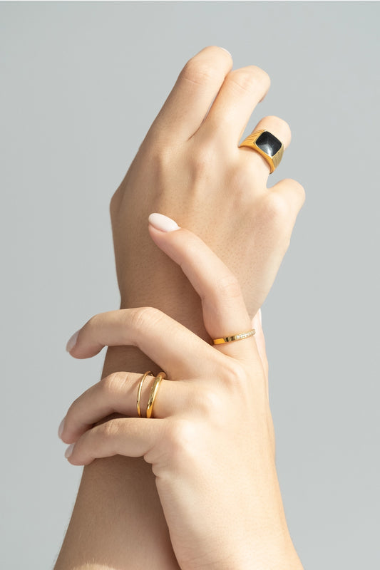 Square Black Chunky Ring
