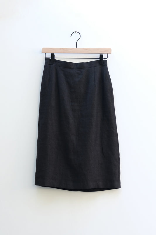 Giorgio Armani Black Linen High Waisted Pencil Skirt, Knee Length, US Size 4, 90s