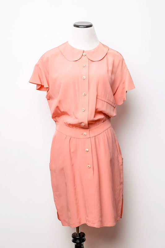 Karl Lagerfeld Peach Silk Dress Peter Pan Collar Ruffle US 6, 90's