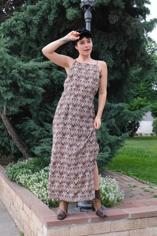 Boho Paisley Brown Maxi Dress US 6/8, 90's La Belle Earthy Hippie
