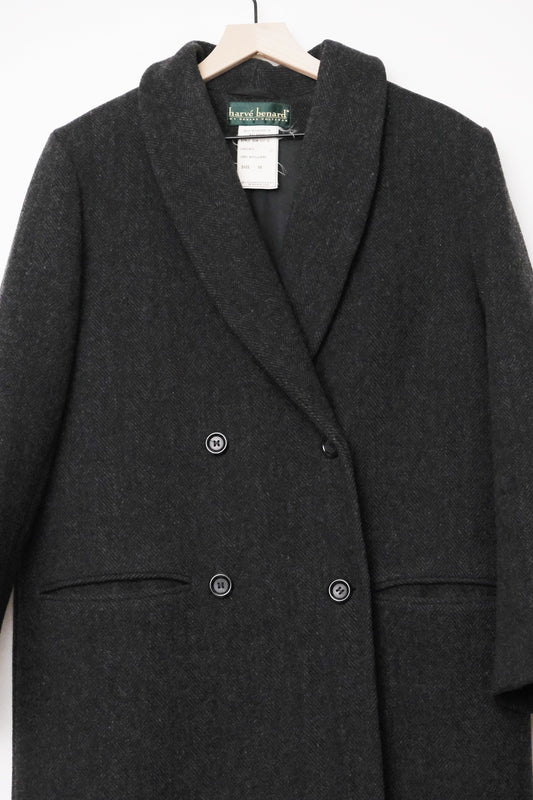 Harvรฉ Benard Grey Wool Tweed Double Breasted Long Coat US 10, 90โs Longline