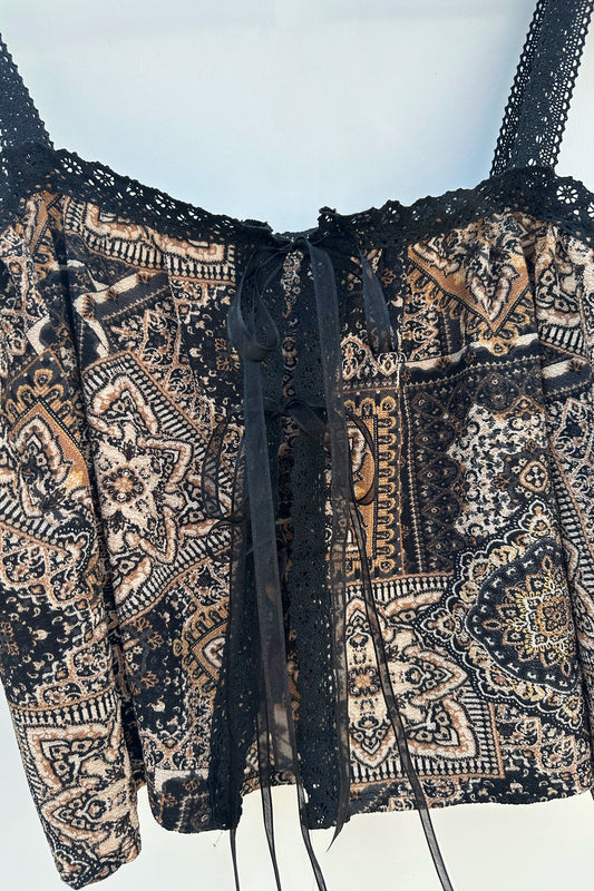 Espresso Boho Patchwork Lace Trim Tank + Skirt Set, US 6 Upcycled 2 Piece Coquette