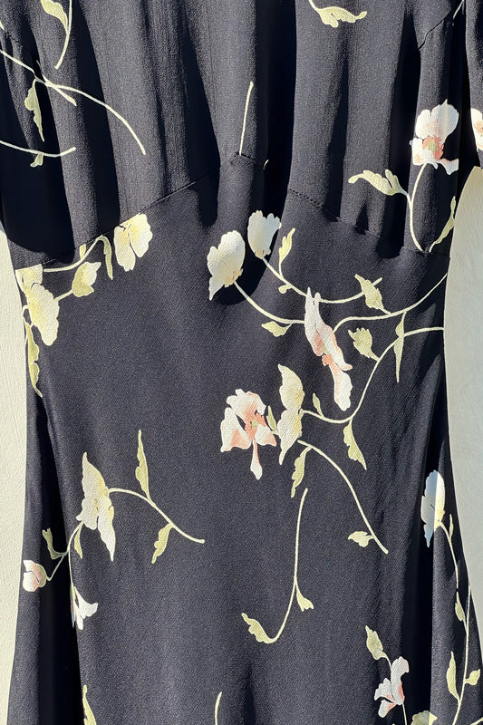 Vintage 90s Black Floral Mini Dress, US 6 S/M, Casual Corner Petite, Punk Grunge Style