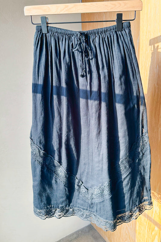 Black Gauze Cotton Boho Midi Skirt 90's Y2K Spoiled Girl US 6