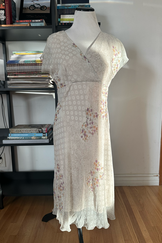DBY Ltd Floral Digital Patchwork Print Dress Cream Flutter Sleeve, Y2K US 4/6