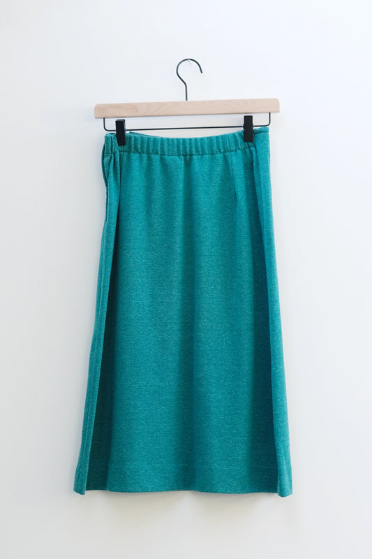 80s New Wave Teal Green A-Line Midi Skirt, High Waisted, US Size 4, Asymmetrical