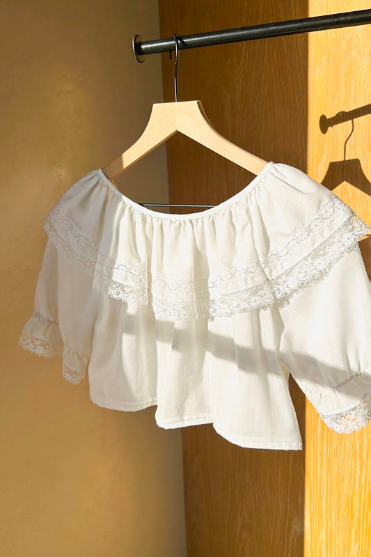Judy Bond White Cottagecore Crop Top, US 6 S/M 80's