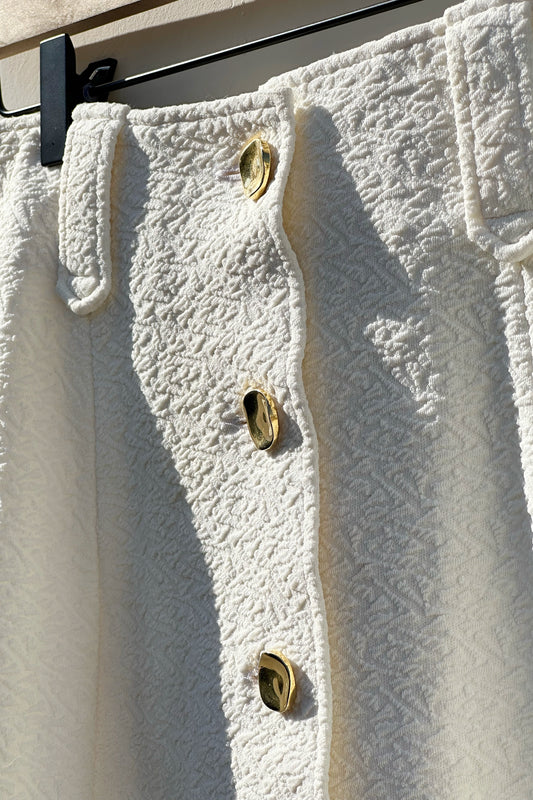 Ivory A-Line Mini Skirt Textured, Abstract Gold Buttons US 6 M