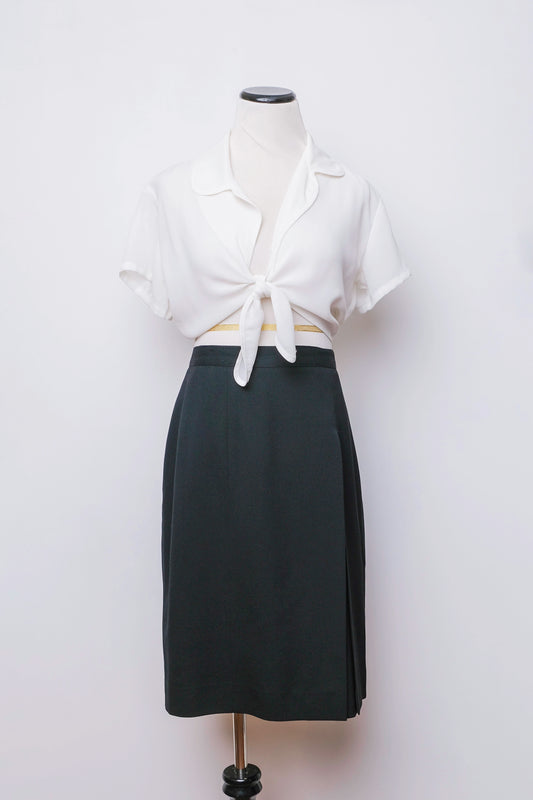 Harvรฉ Benard Ltd Khaki Pleated Wool Skirt US 4, 90's