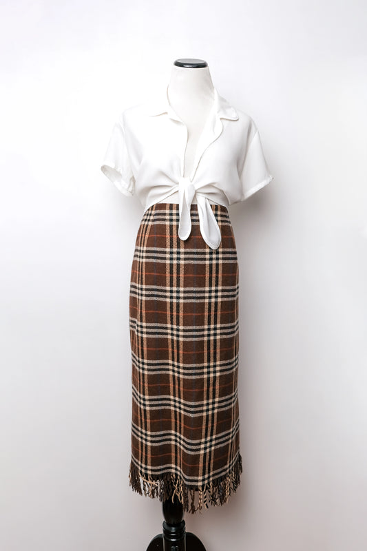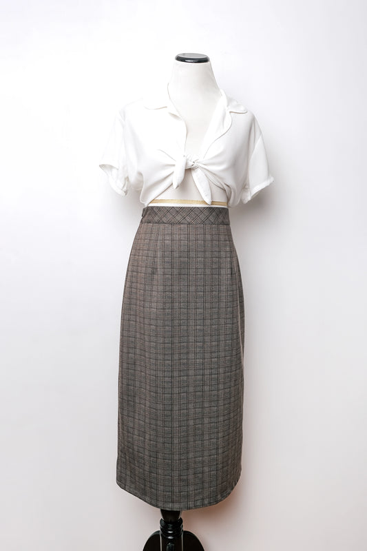 Miss Patina Brown Plaid Midi Pencil Skirt US 8, Y2K