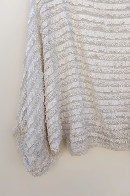 Vintage Ivory Lace Romantic Blouse, 70s Edwardian Victorian Angelic