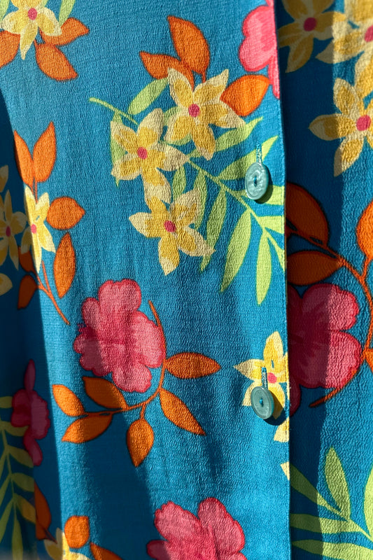Cerulean Blue Tropical Floral Short Sleeve Button Down US 16 XL 90's