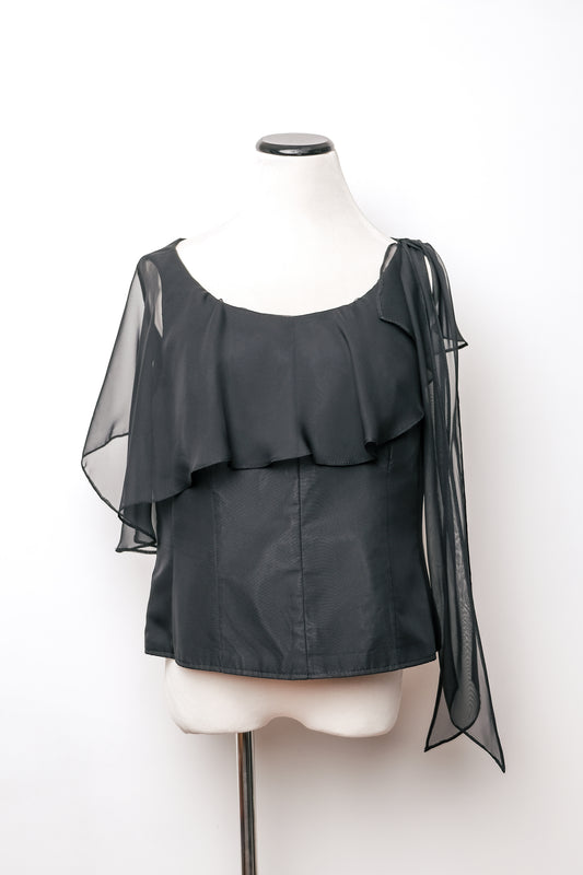 Black Sheer Ruffled Overlay Sleeveless Top Modern Avant Garde US XL 14, 90's Ricci Lizaso