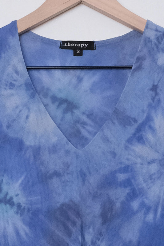 90s Therapy Blue Tie Dye Mesh Top, Half Sleeve, US Size 6 S/M, Rave