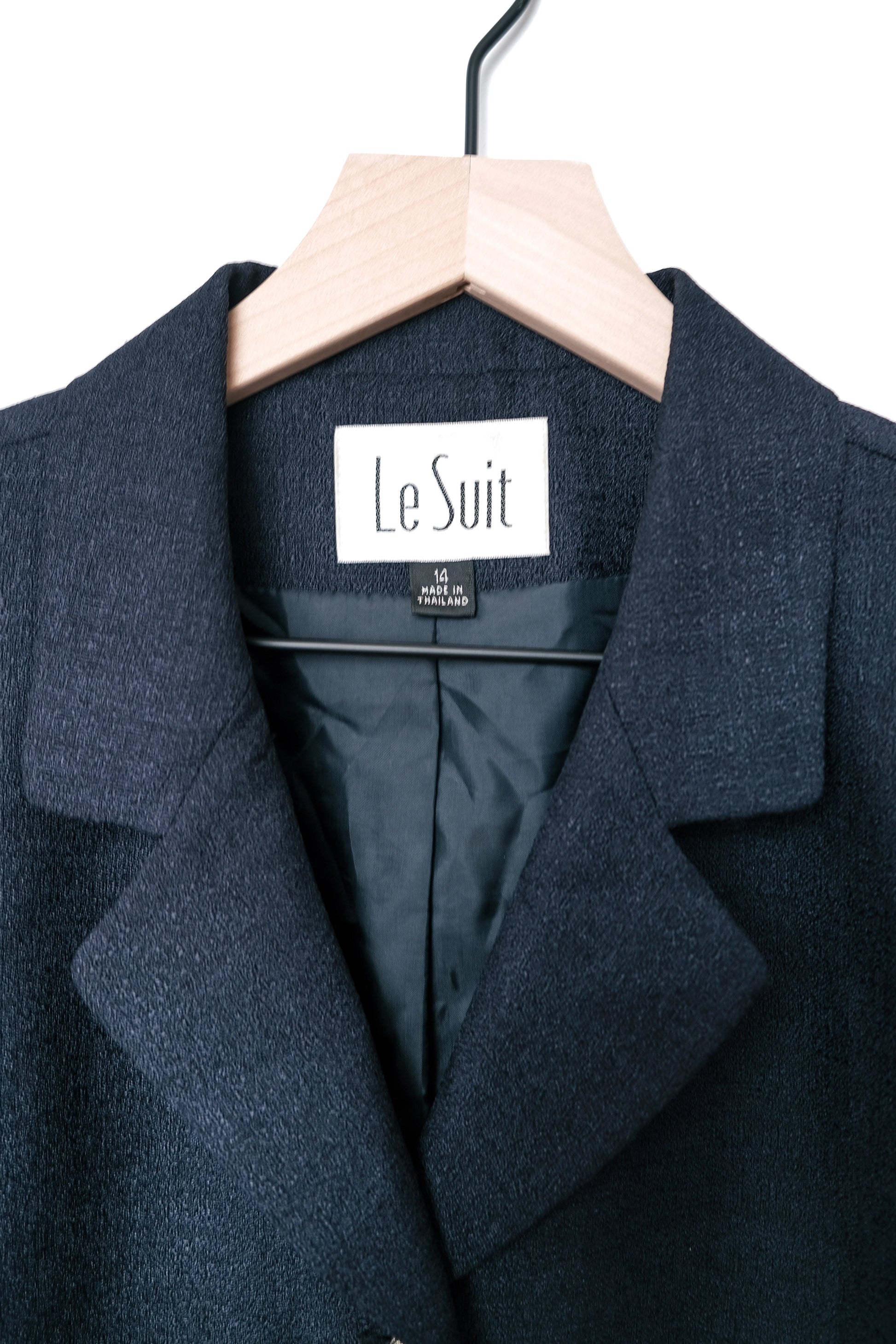 Le Suit Navy Blue Short Sleeve Jacket Victorian Floral Buttons US 8 90's