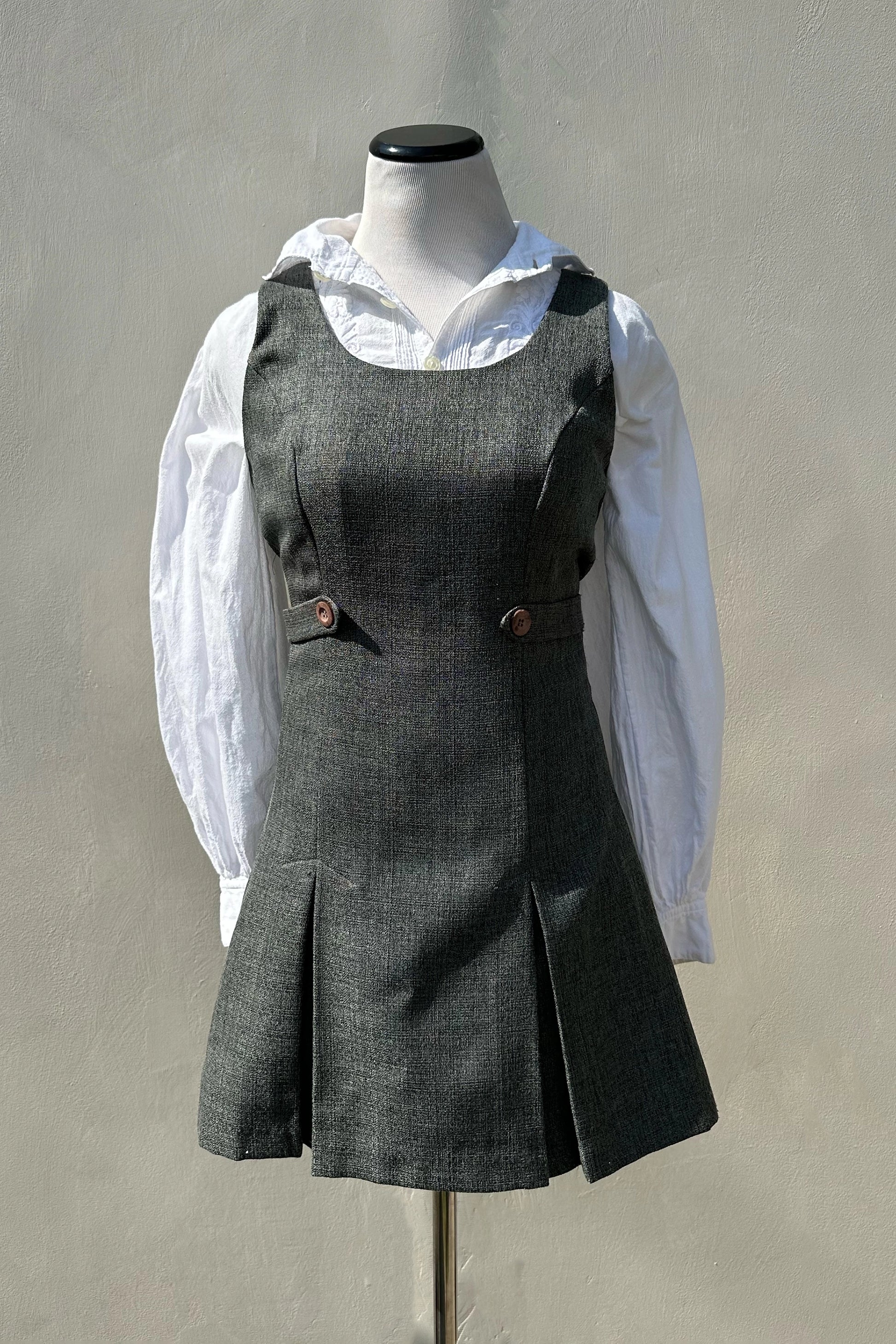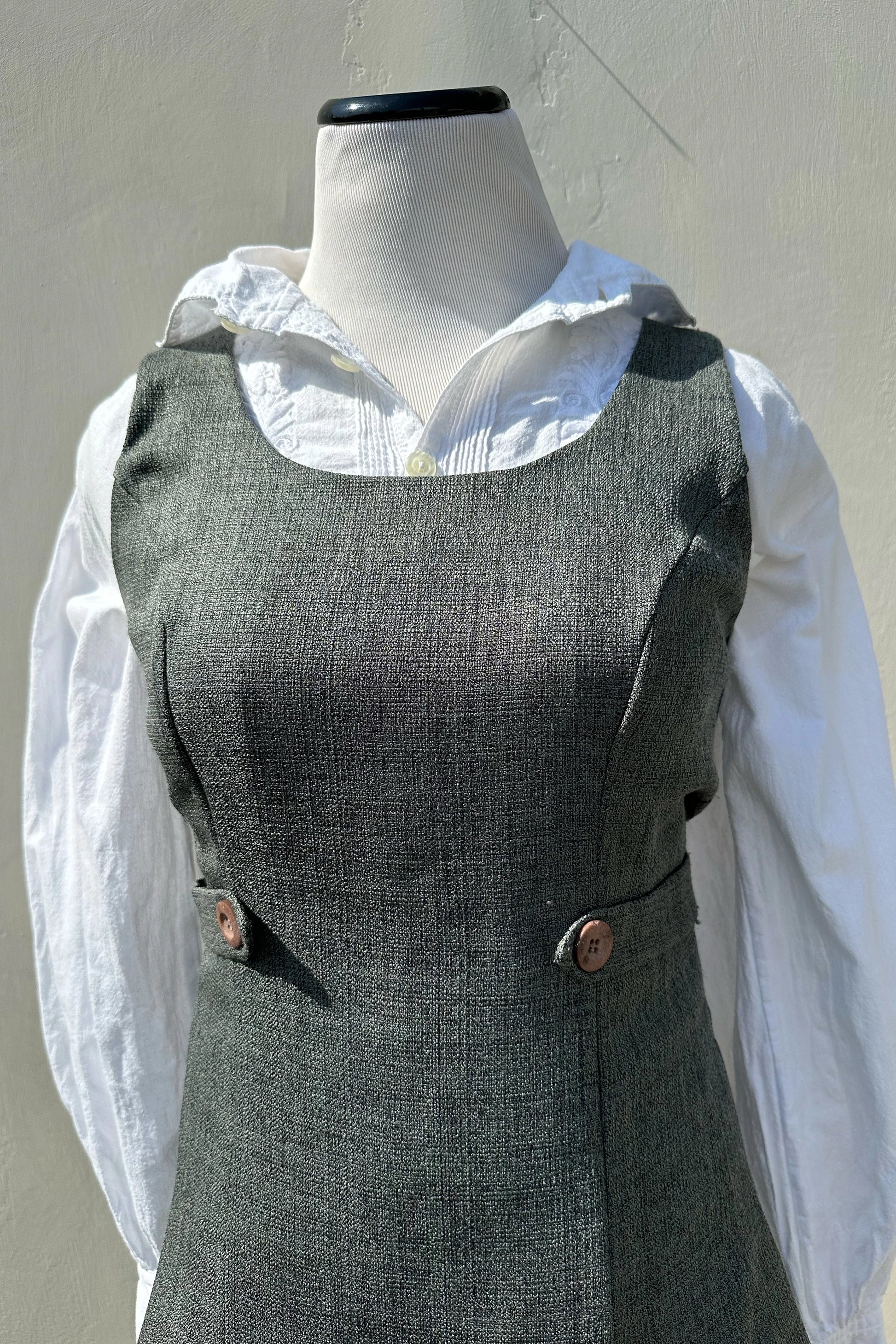 Tweed 90's Schoolgirl Fitted Dress Size US 6, Olive Grey Jumper, All That Jazz