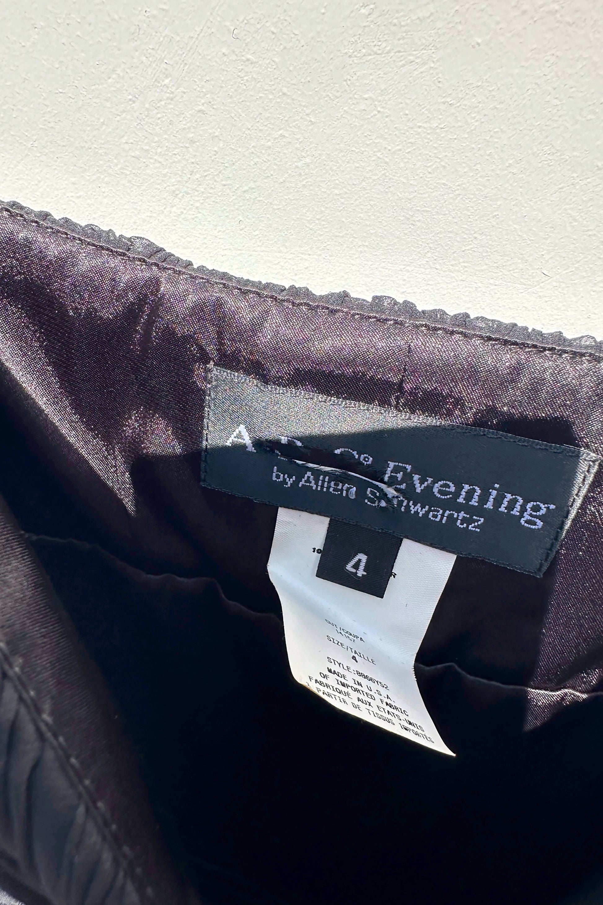 Allen Schwartz Black Pleated Silk Evening Dress, US 4 90's