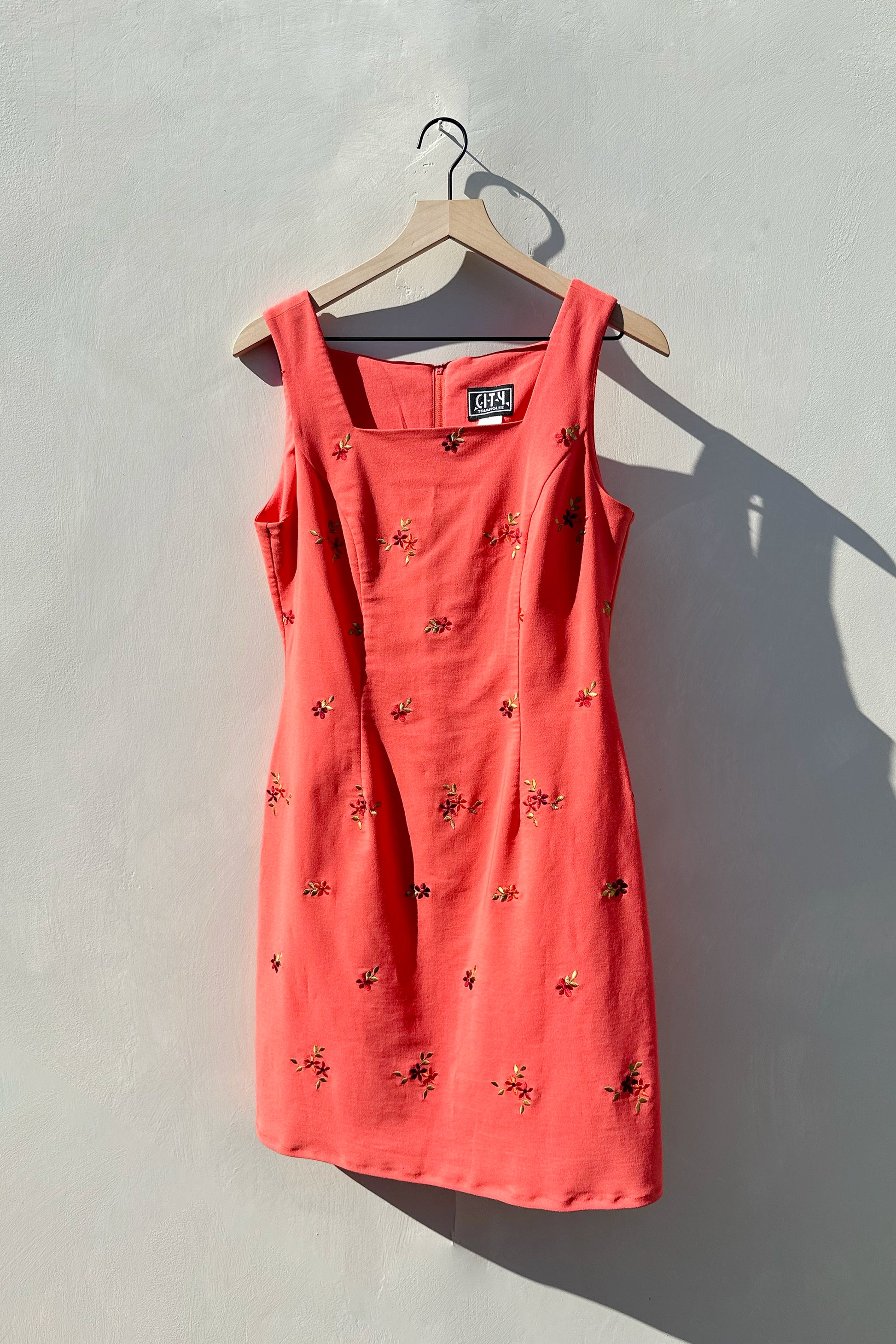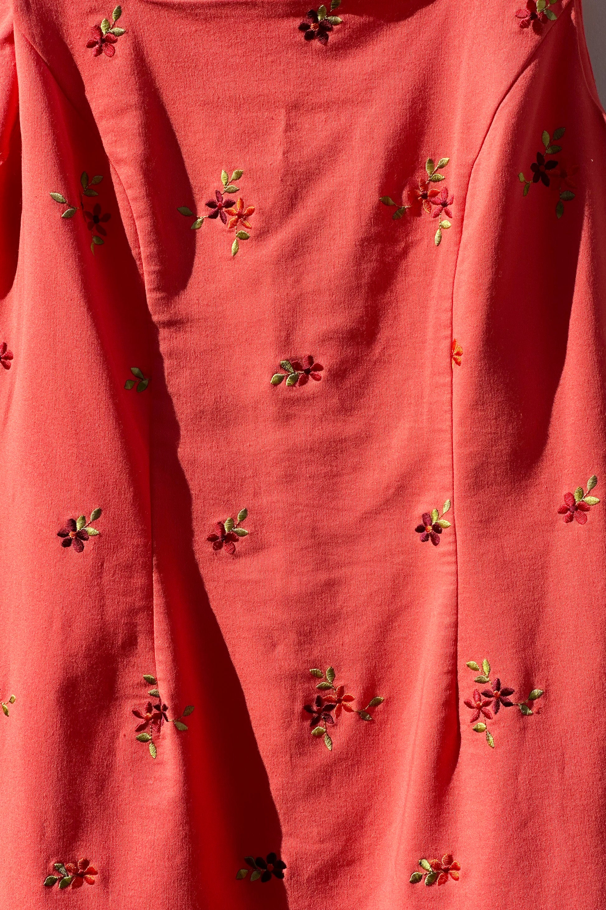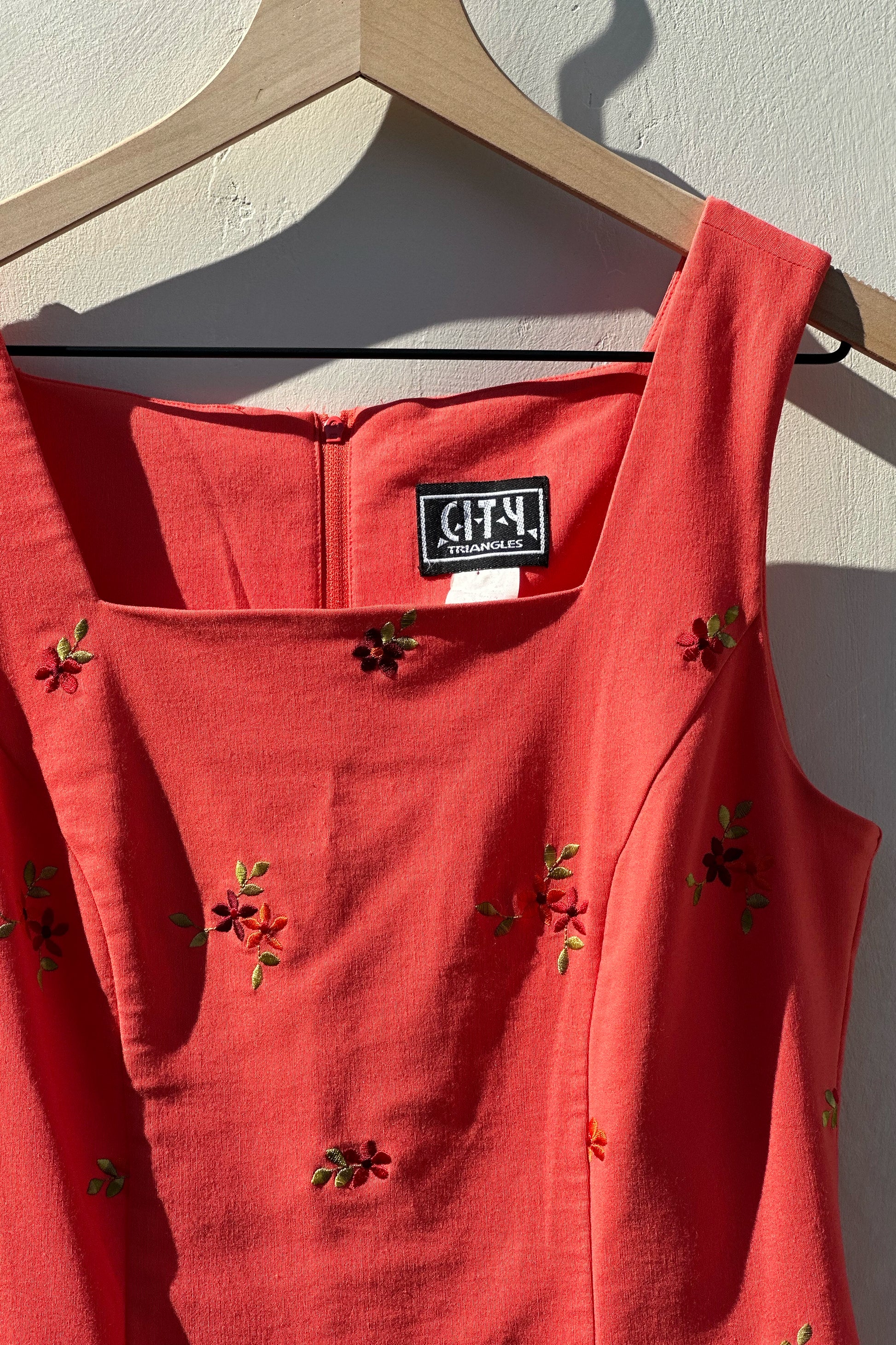 Red Dress Embroidered Flowers 90's, US 8 M/L City Triangles