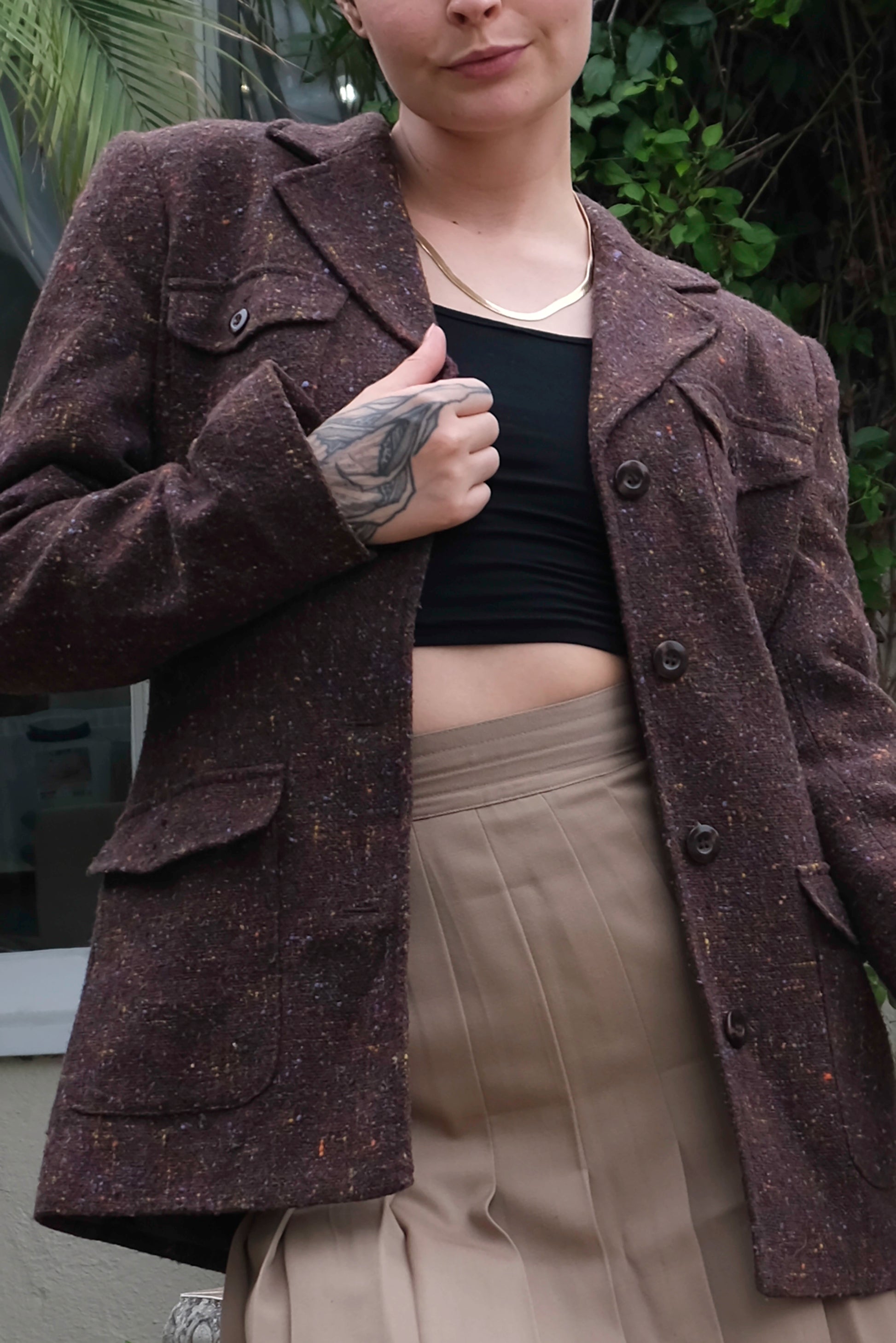 Liz Claiborne Brown Speckled Tweed Jacket US 6, 90's