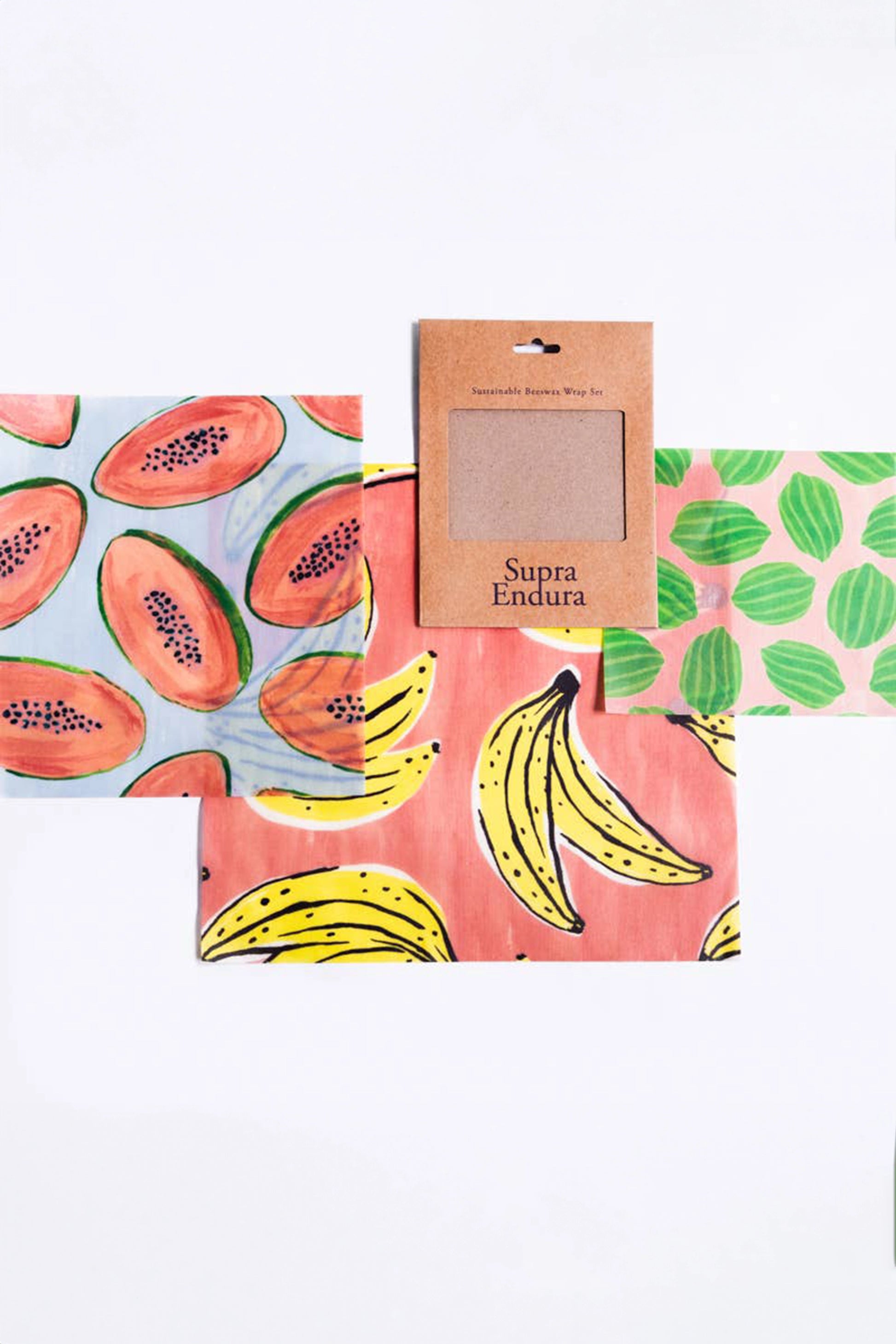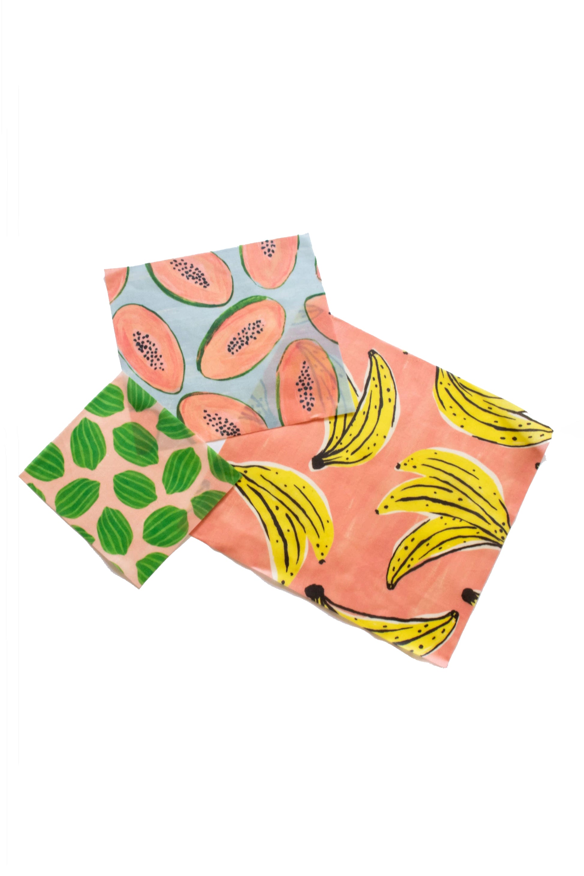 3-Pack Beeswax Wrap, Banana Papaya Watermelon Tropical Fruit Print