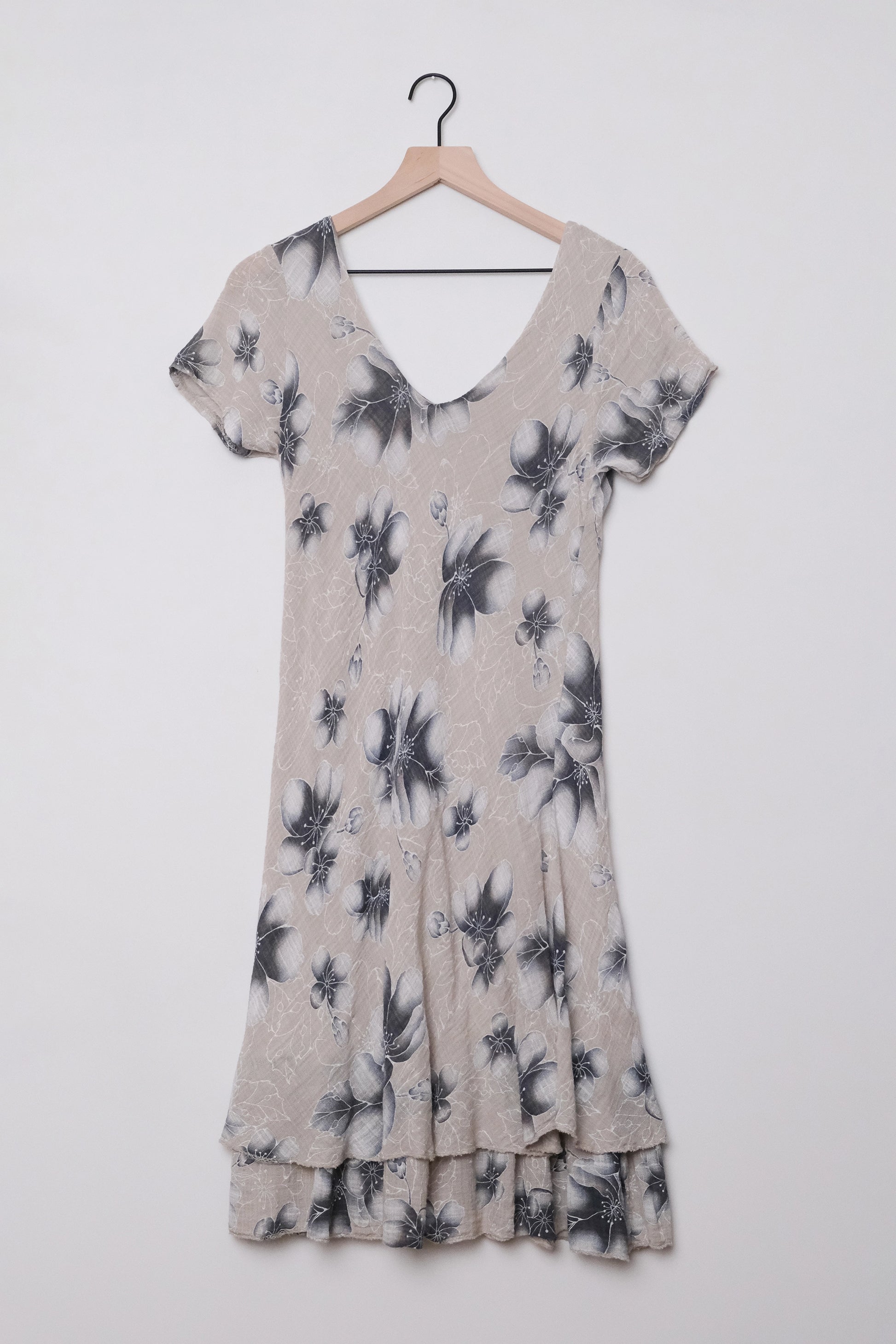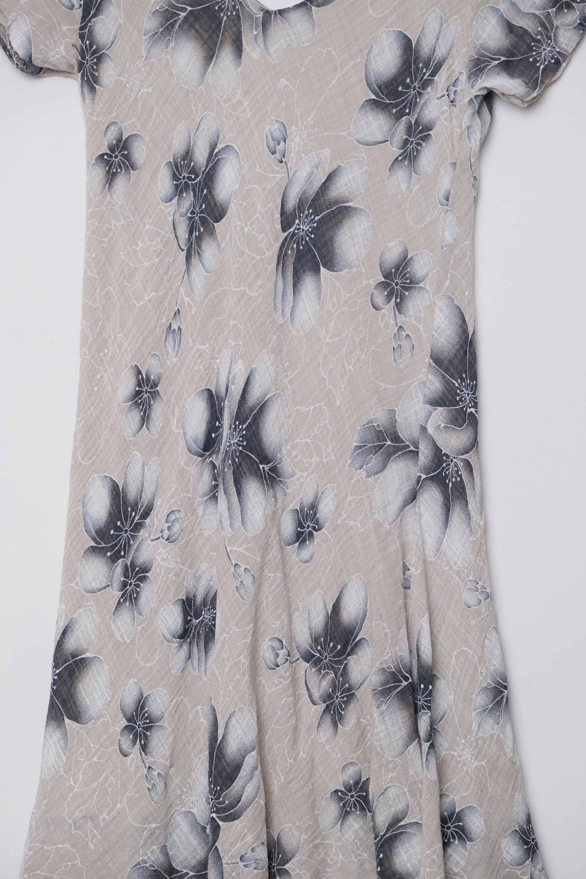 Y2K Italian Gauzy Layered Floral Mini Dress, Gray Blue, US Size 6, Vacation