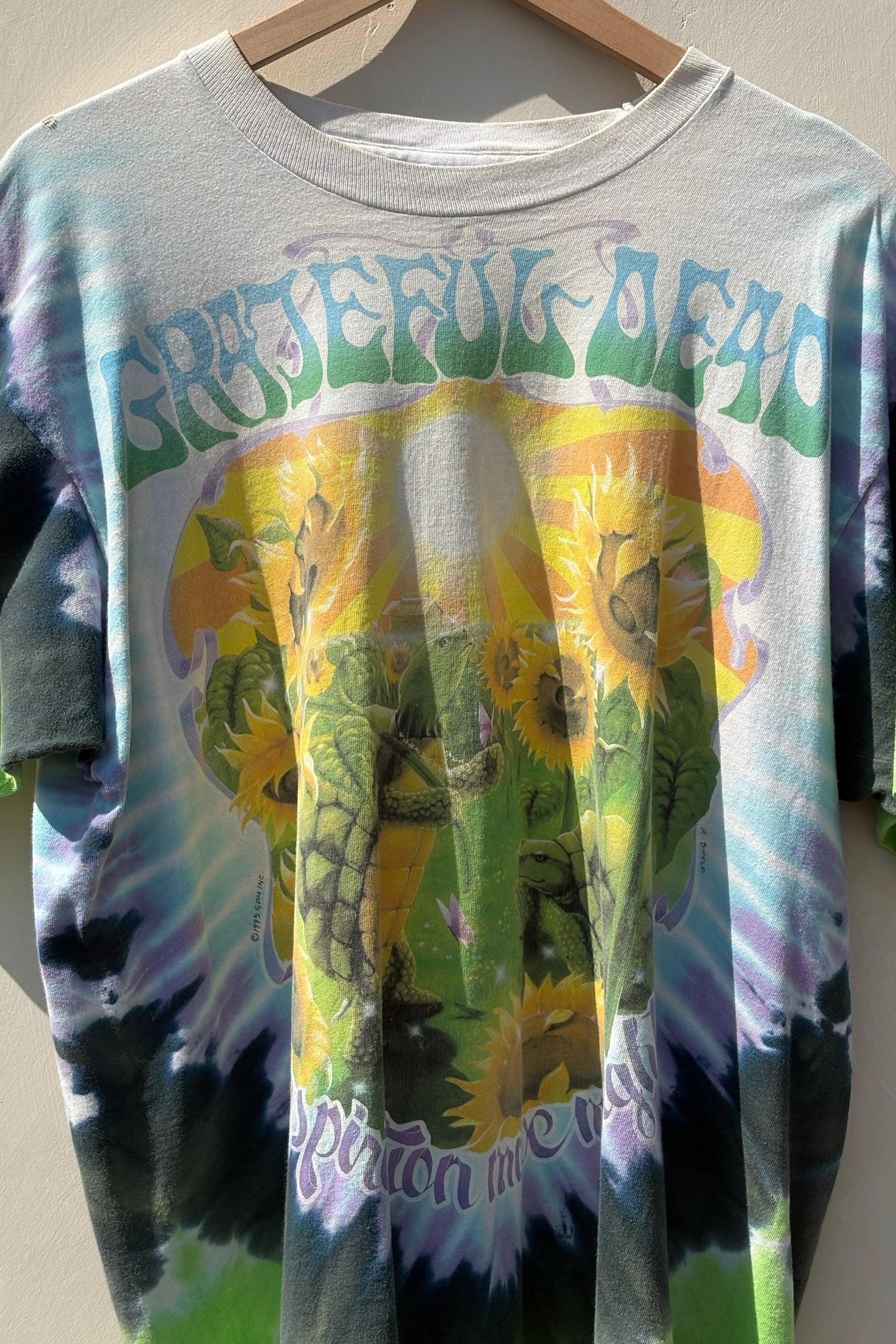 Worn vintage Grateful Dead t-shirt 1995 Summer Tour Turtle Terrapin AOP. Small hole on the upper right hand shoulder.