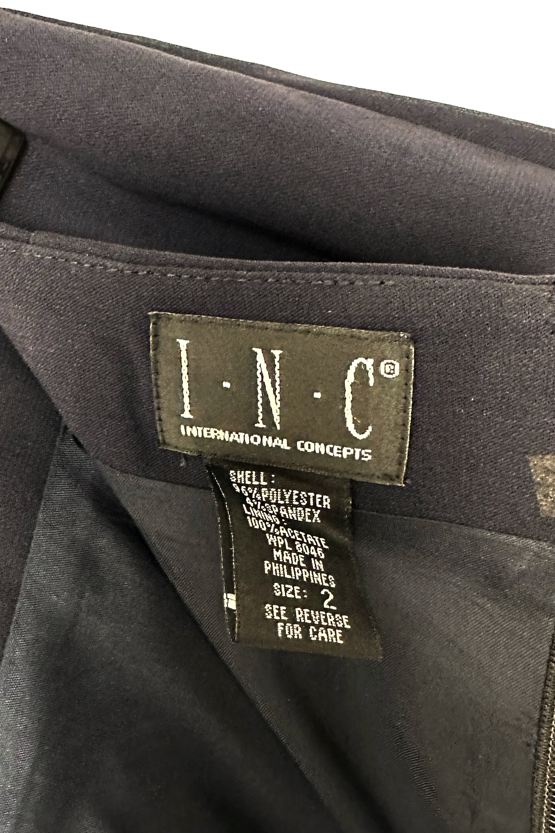 INC Minimalist Navy Blue Straight Maxi Skirt, US 2 Modern Clean Silky