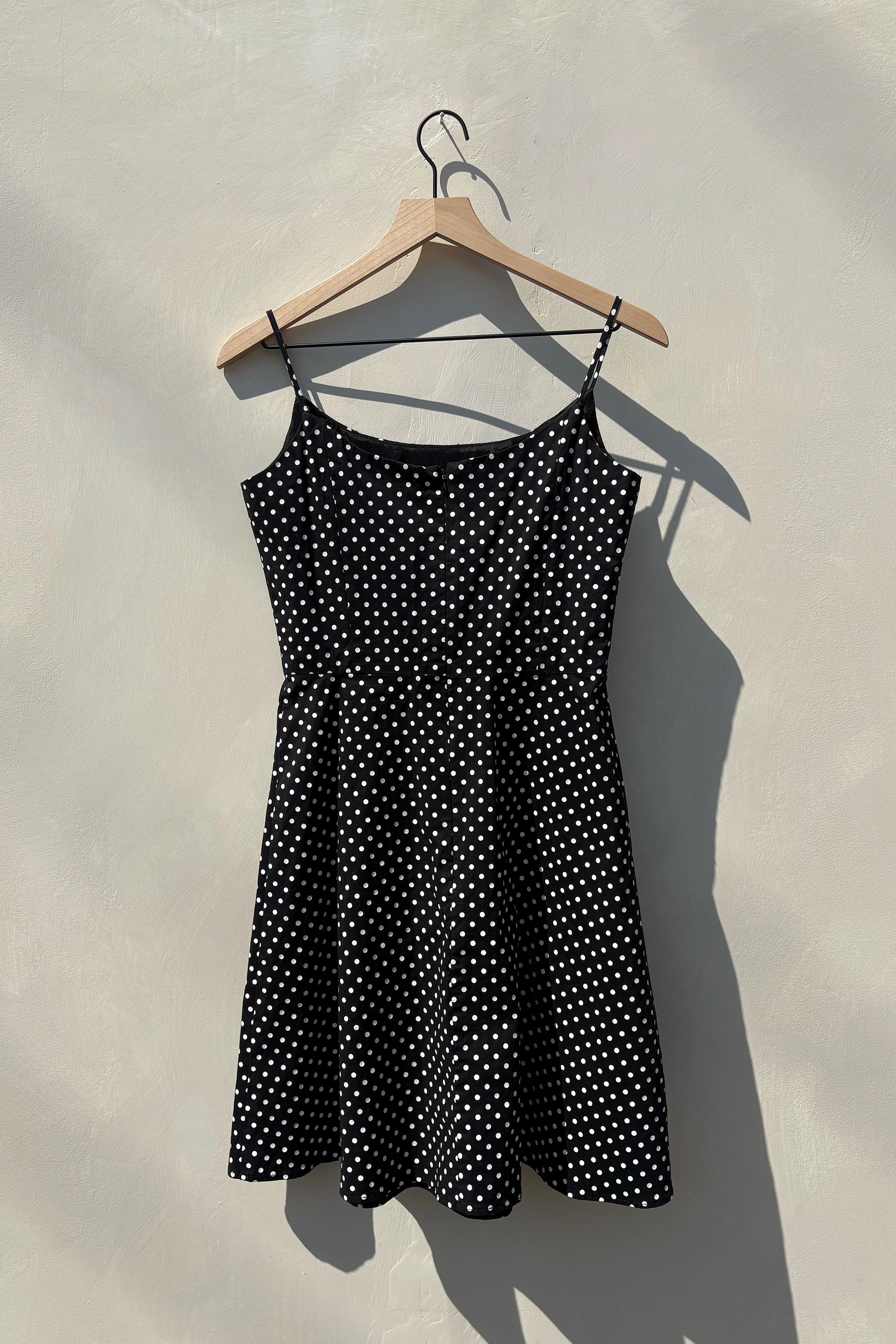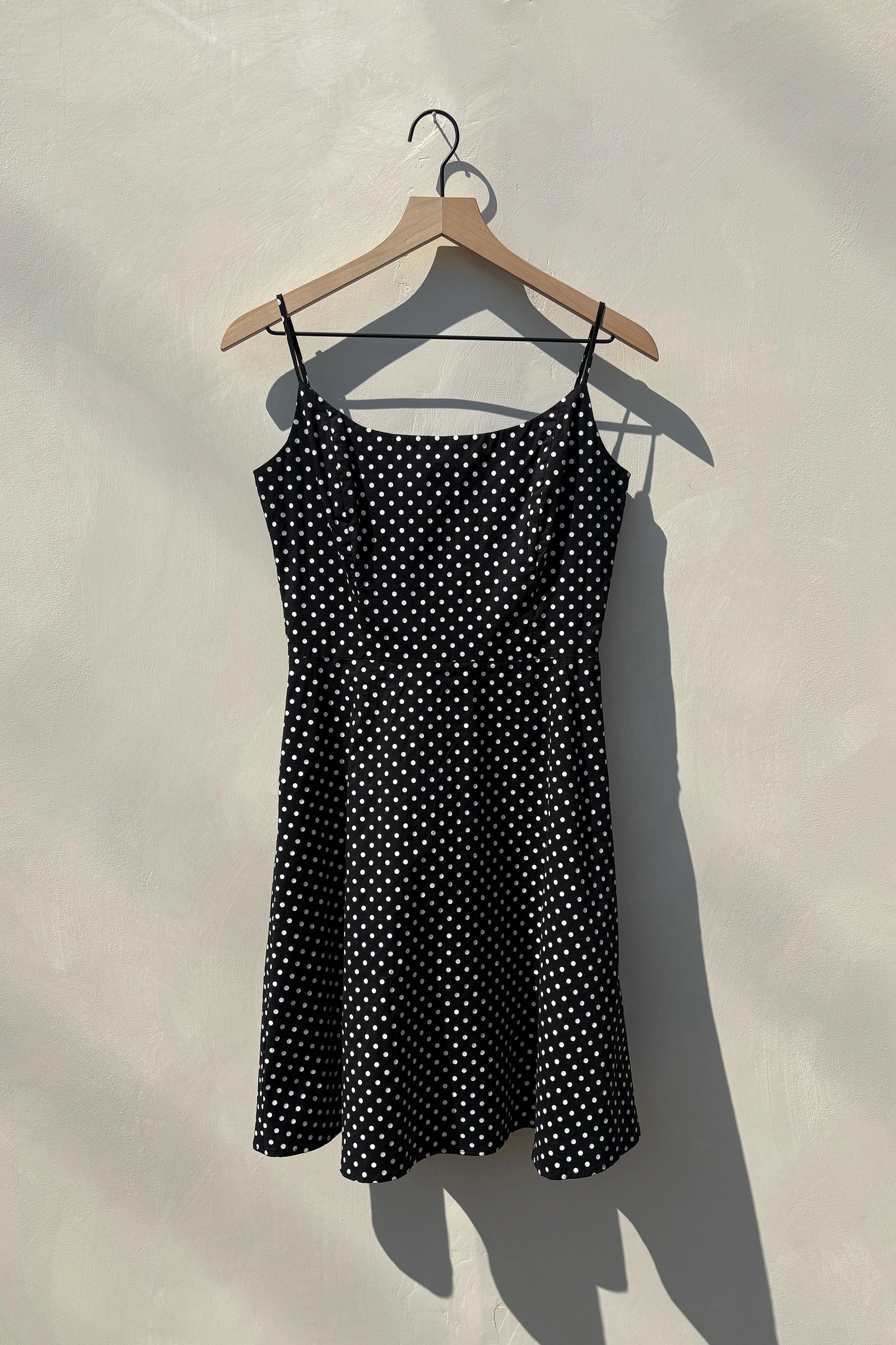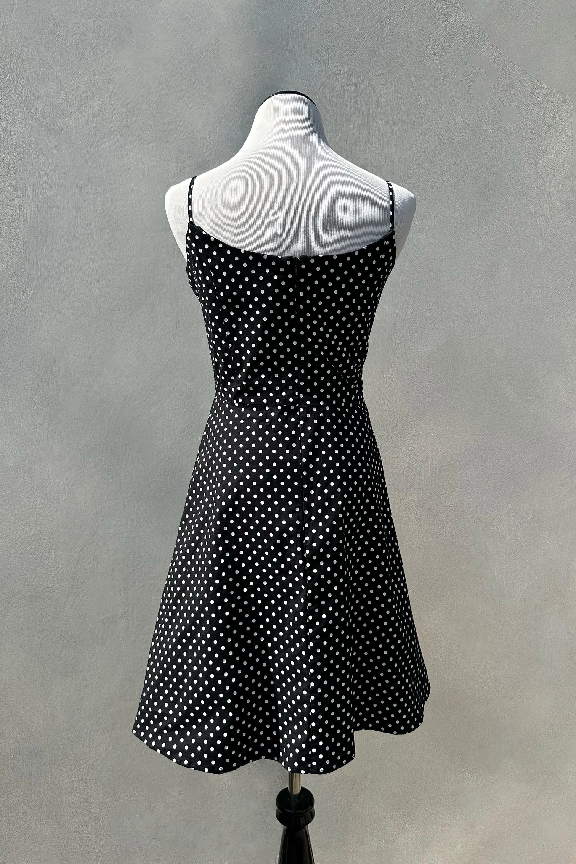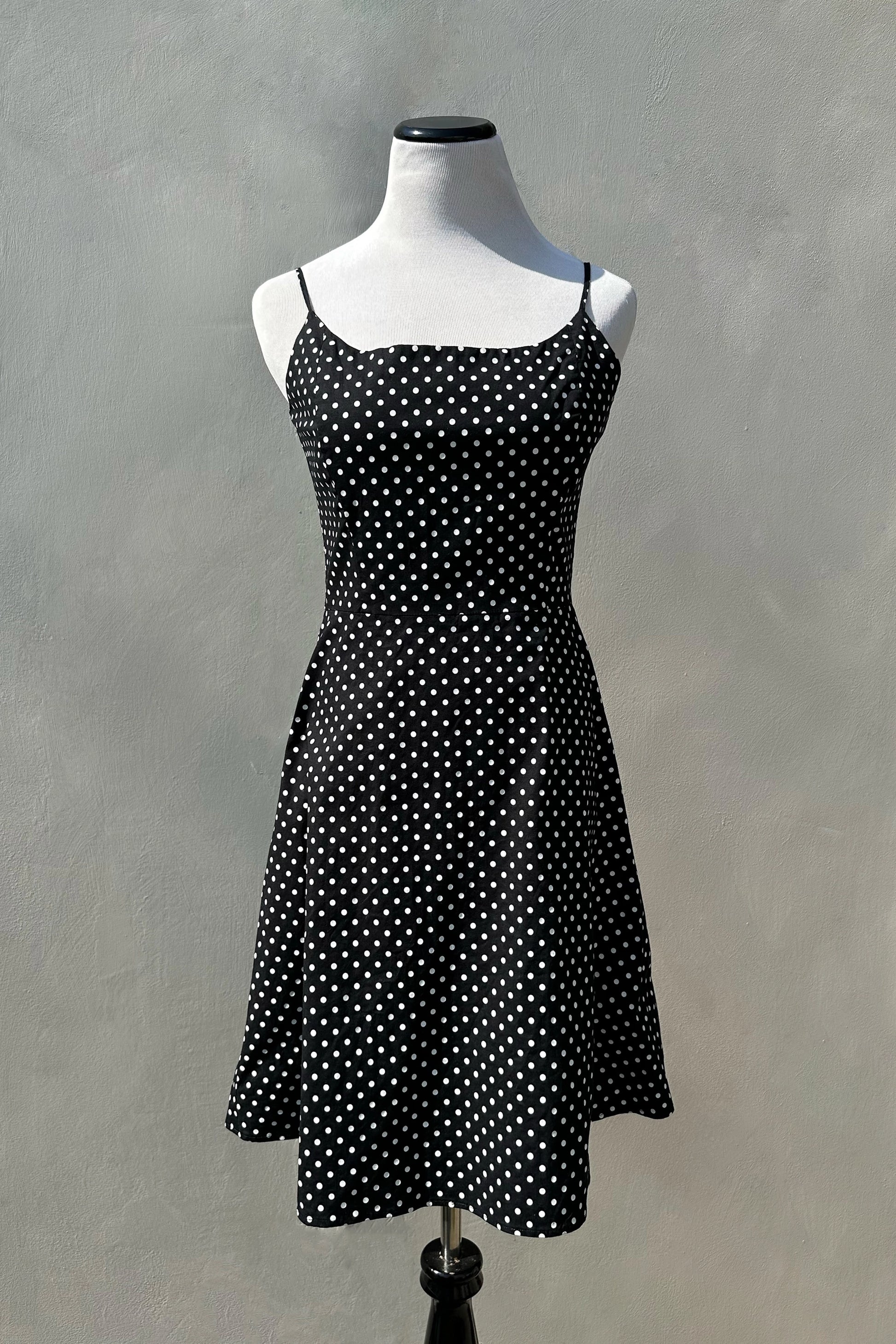 90's Black Polka Dot A-Line Mini Dress, US 6 M Spaghetti Strap Cotton