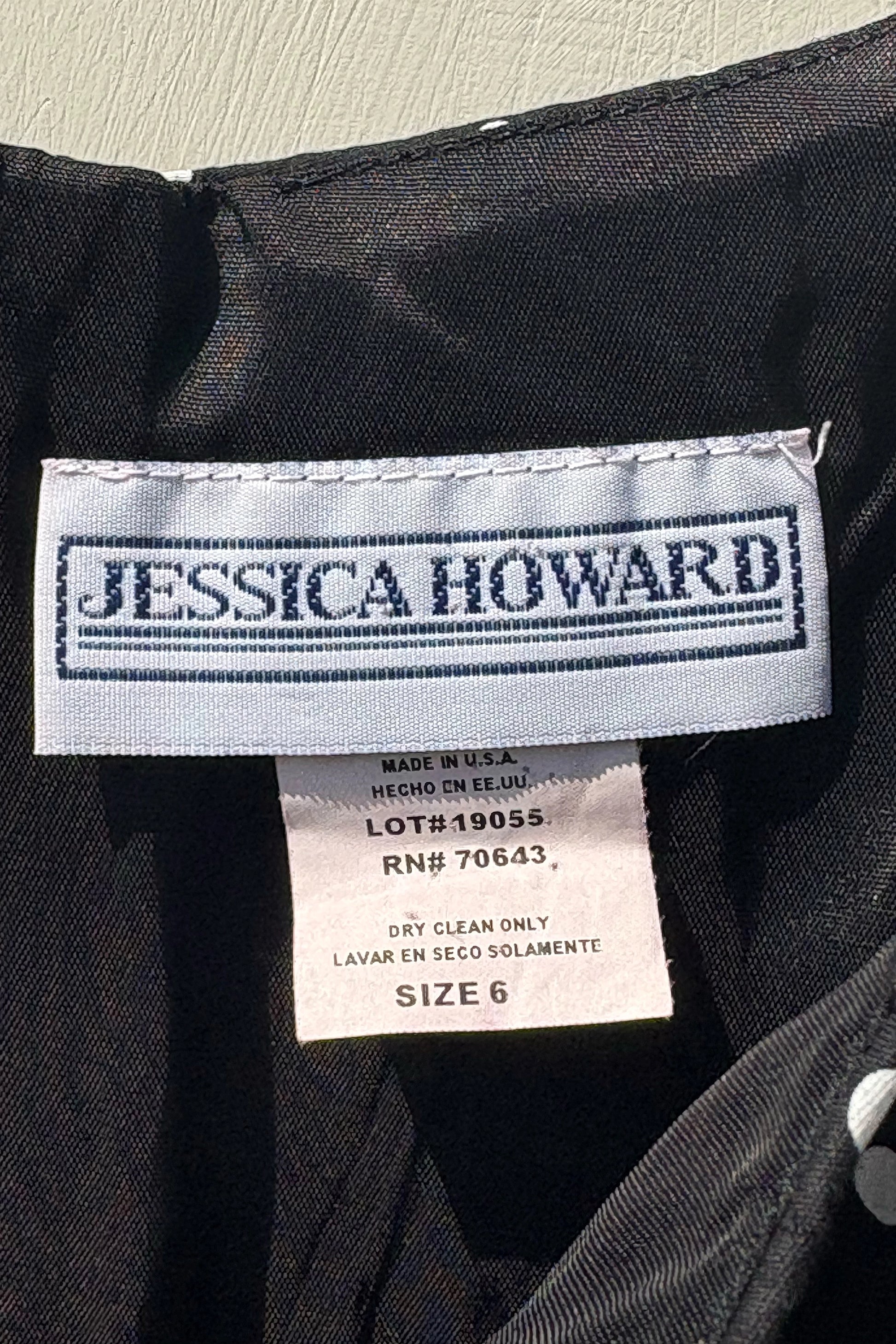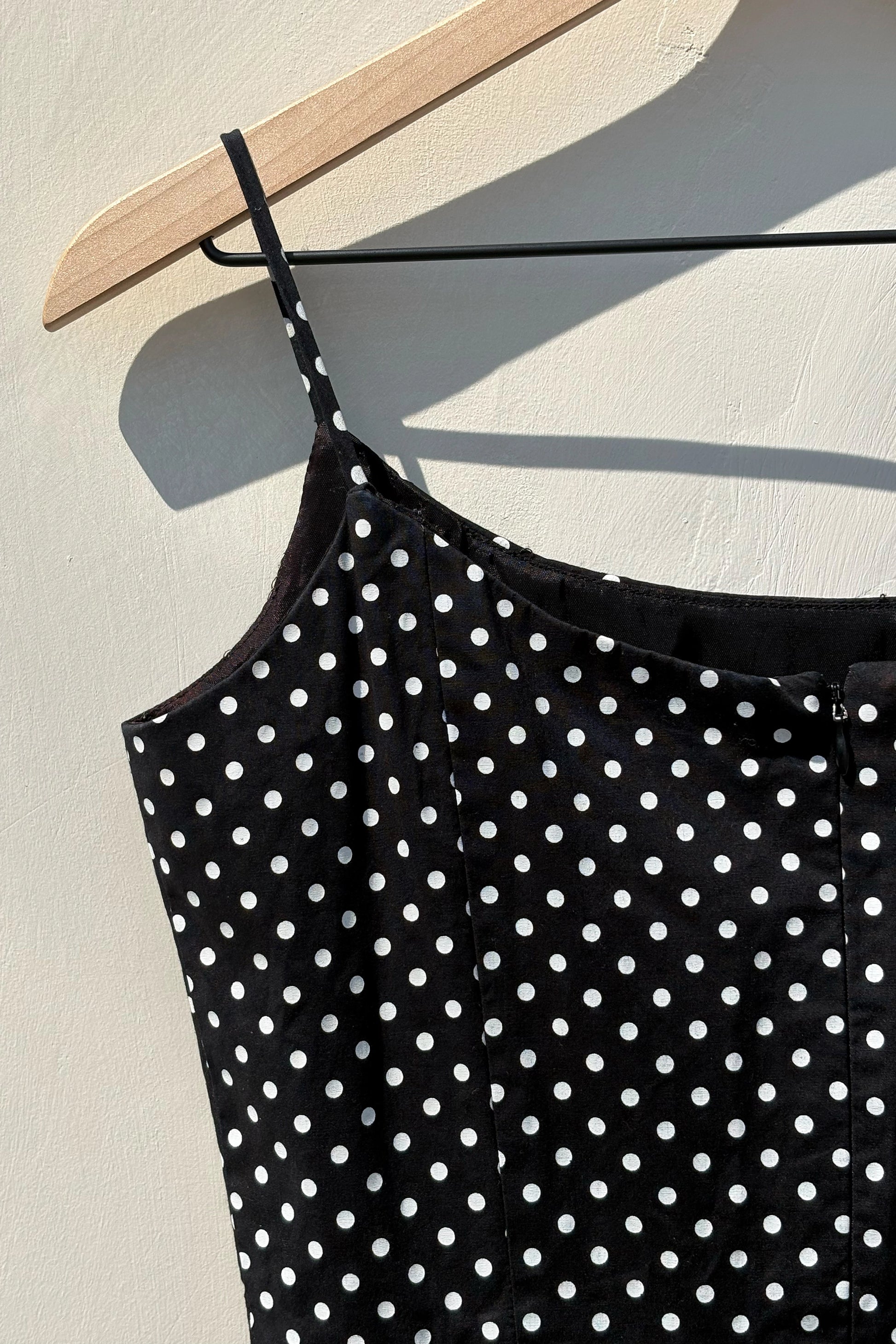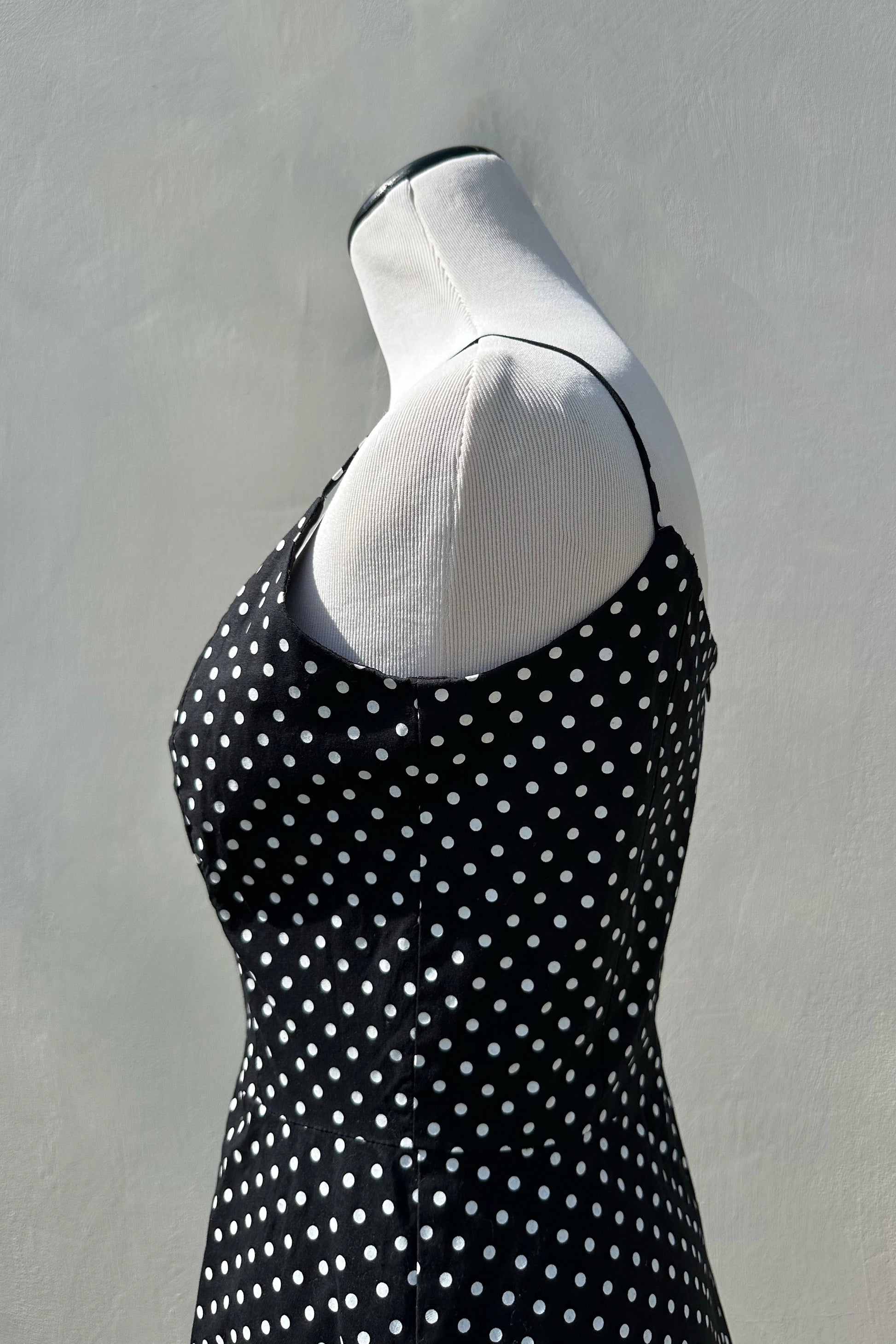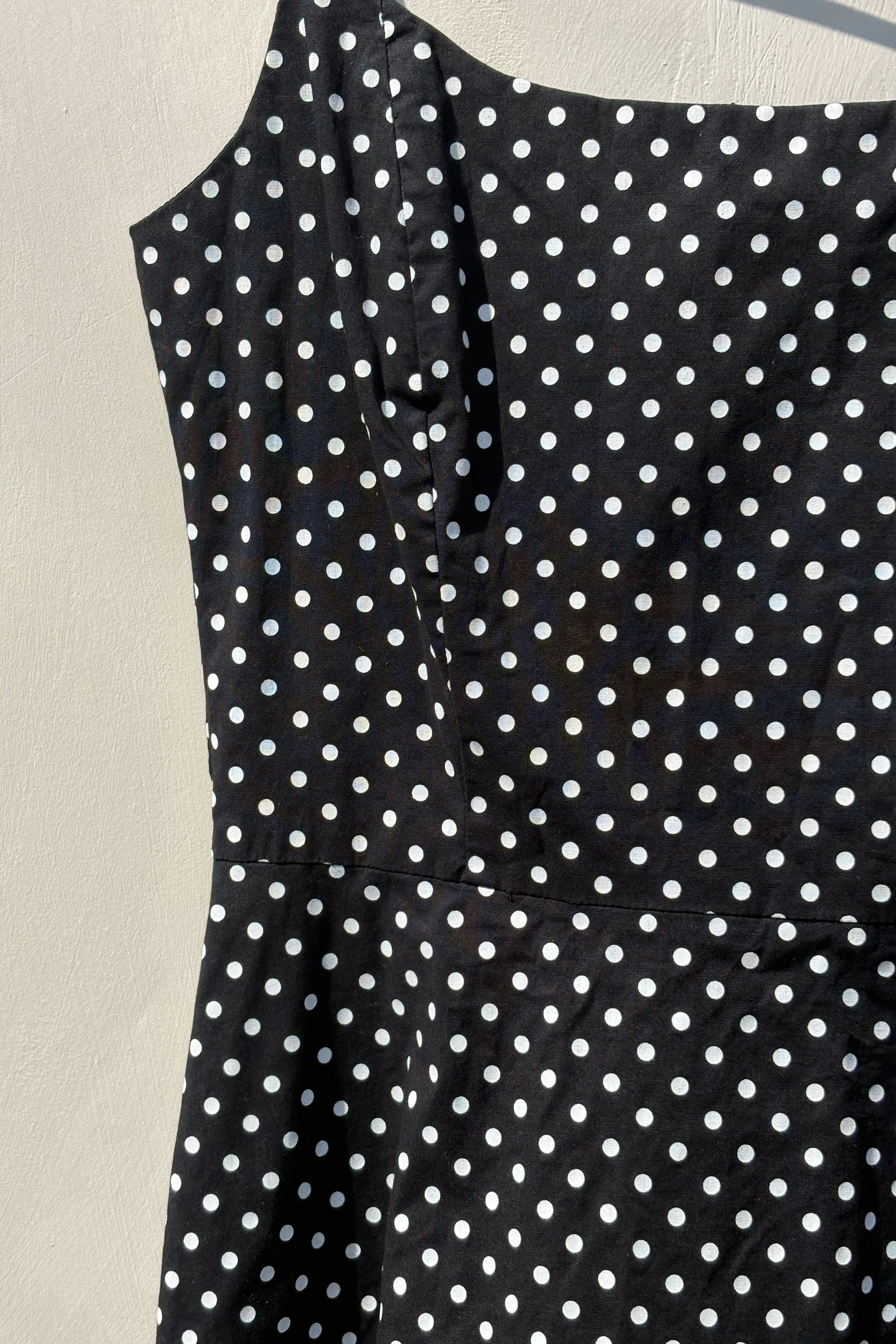 90's Black Polka Dot A-Line Mini Dress, US 6 M Spaghetti Strap Cotton