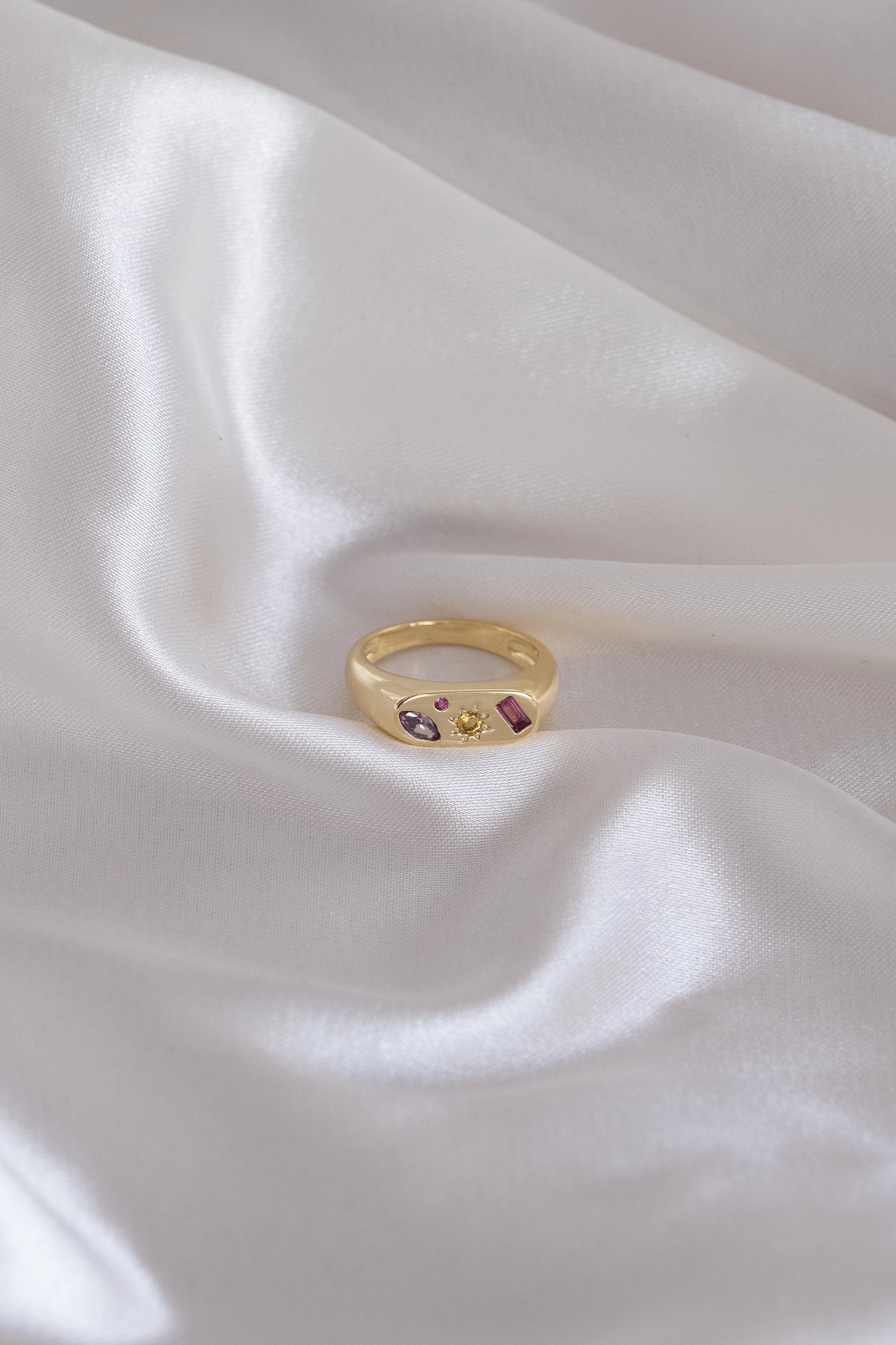 Kaleidoscope Gemstone Gold Signet Ring