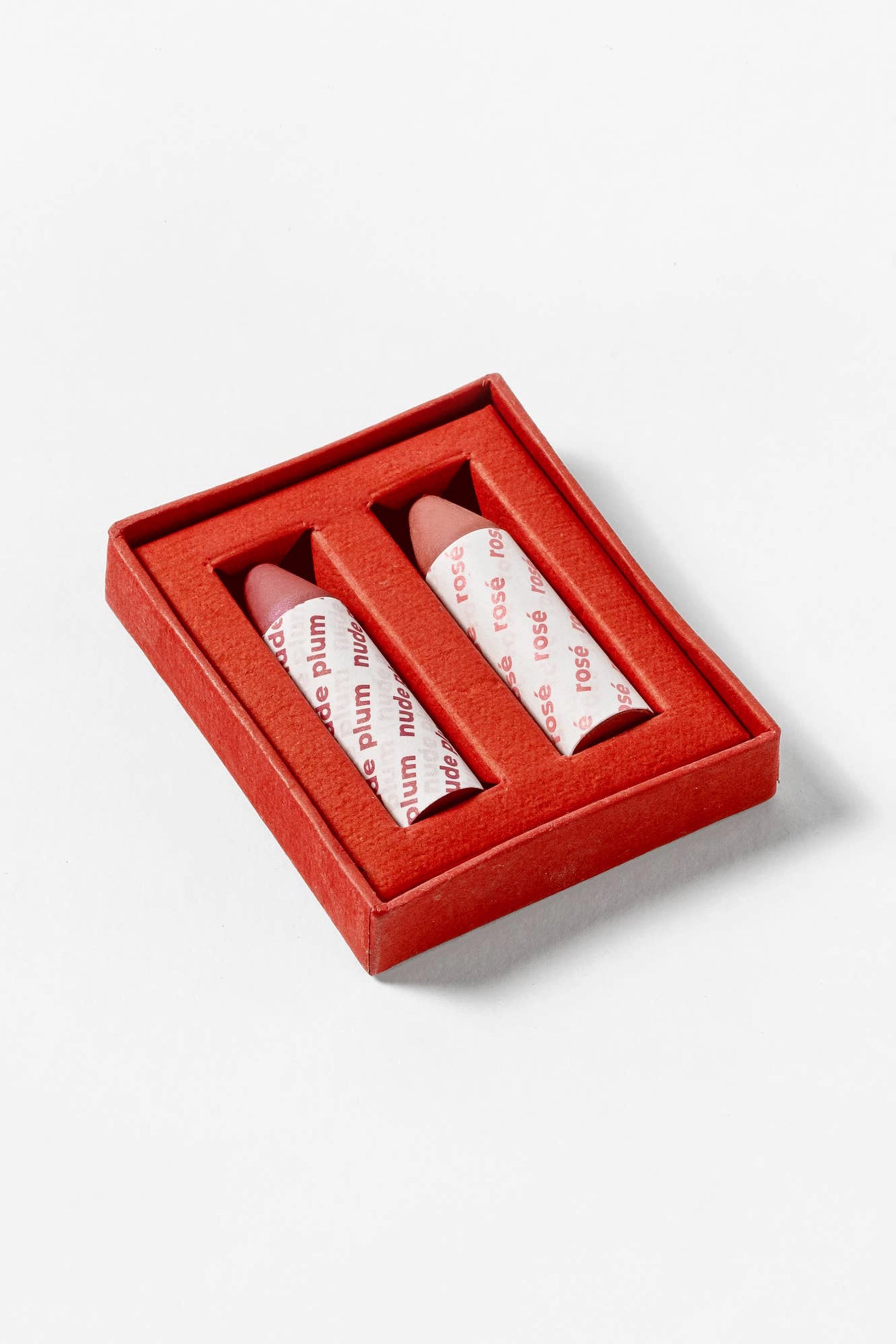 Nude Plum + Rosé Balmie Duo for Eyes, Lips, Cheeks, Zero Waste Multi-Use Crayon