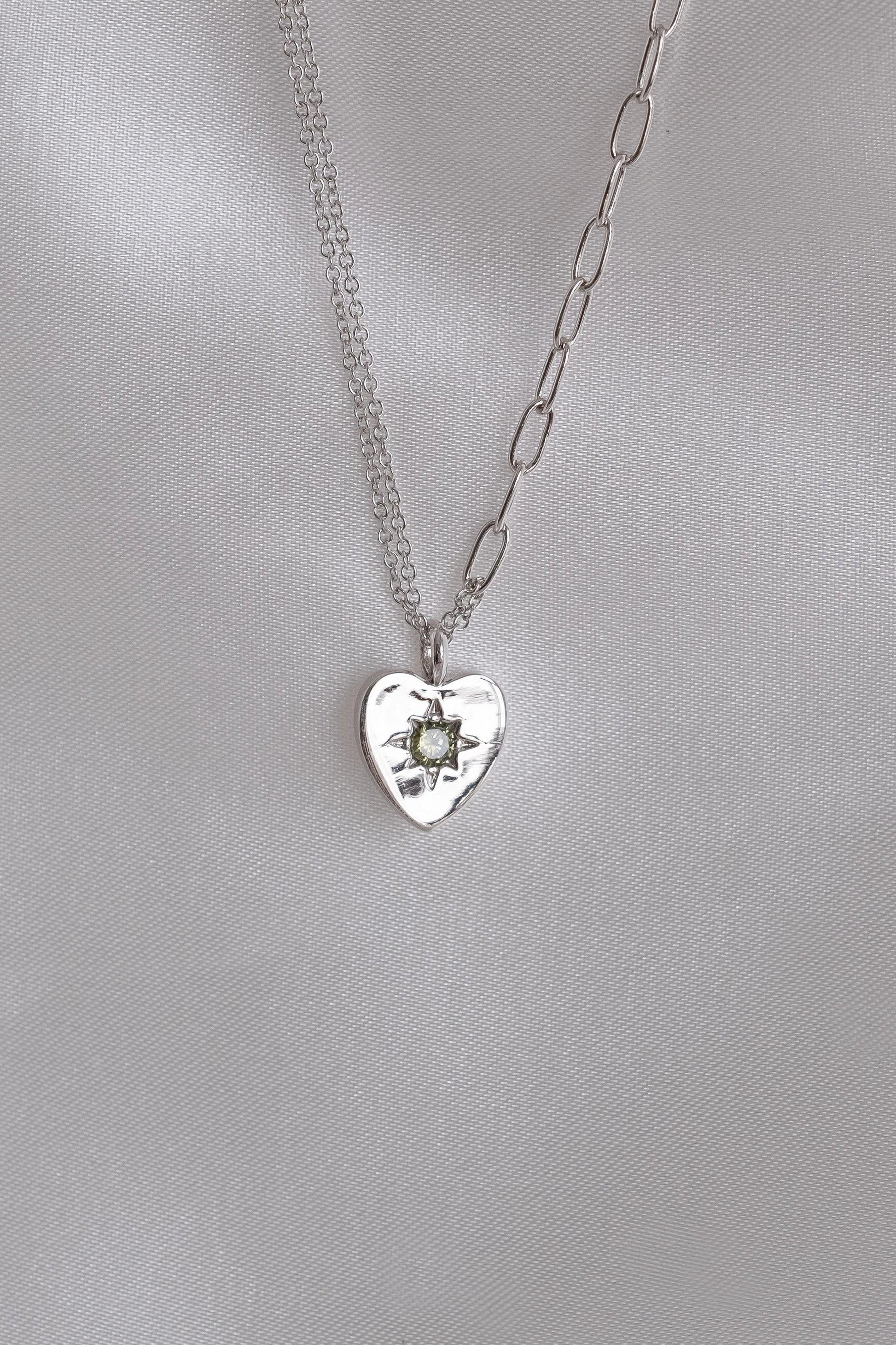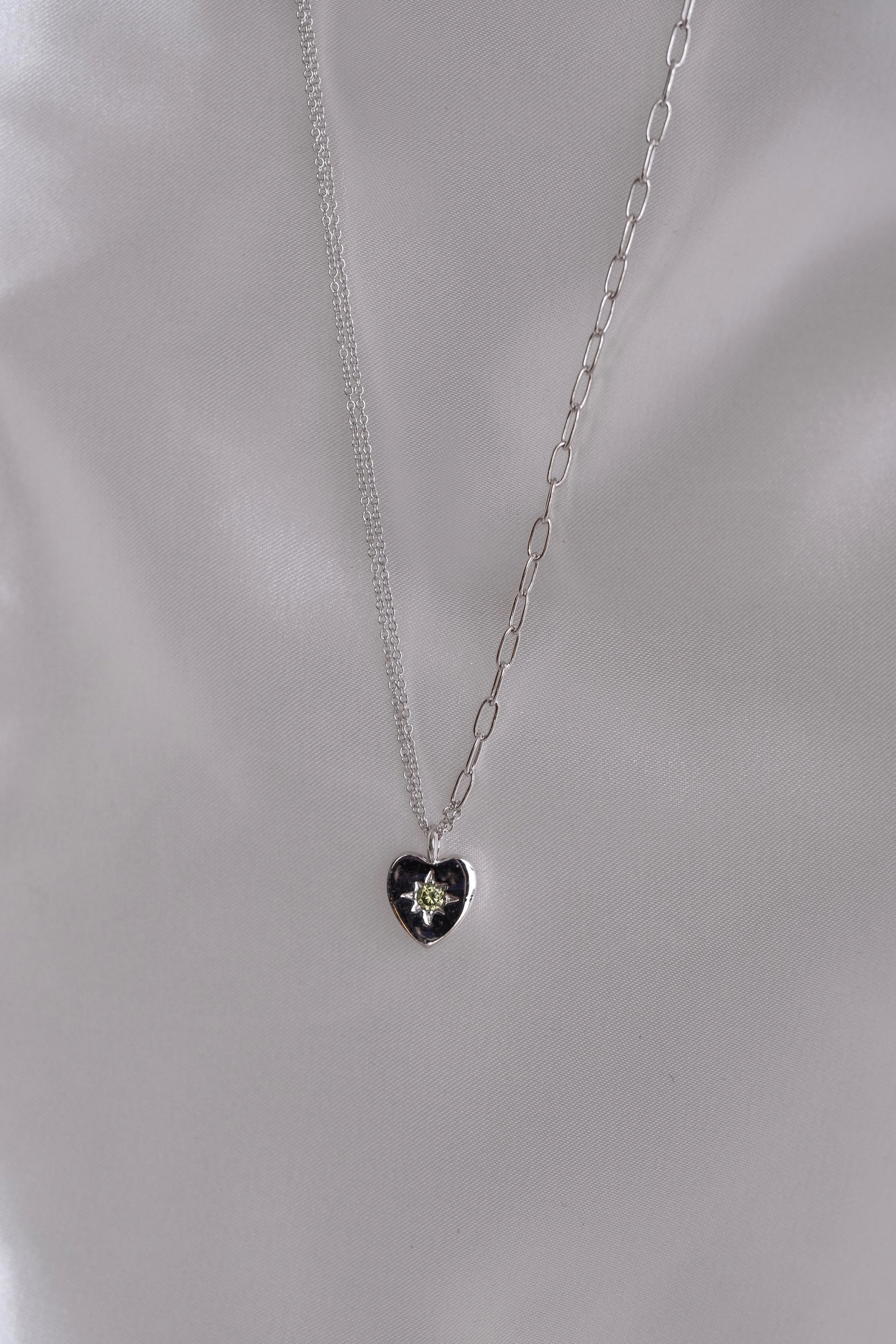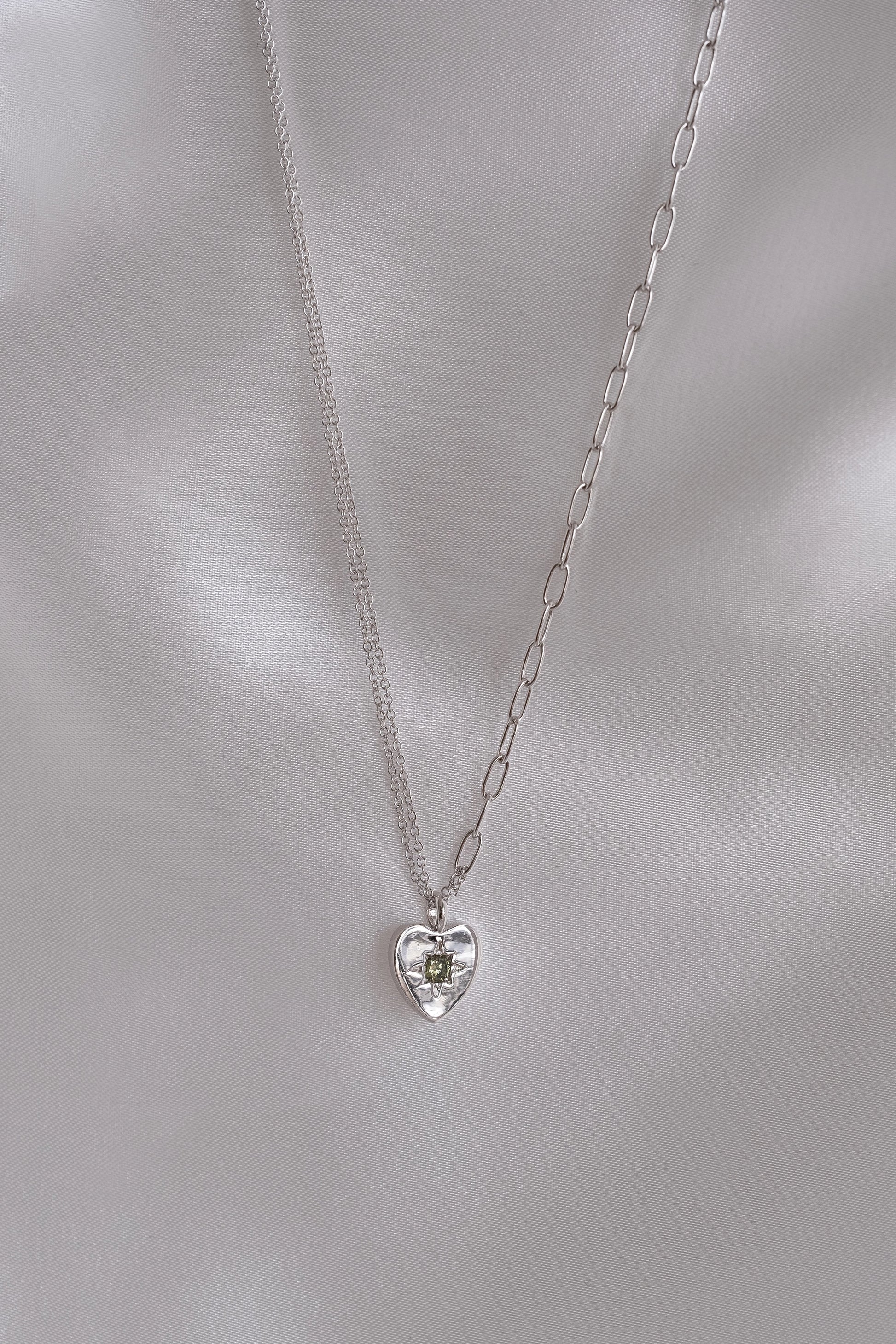 Peridot Heart Silver Double Chain Necklace