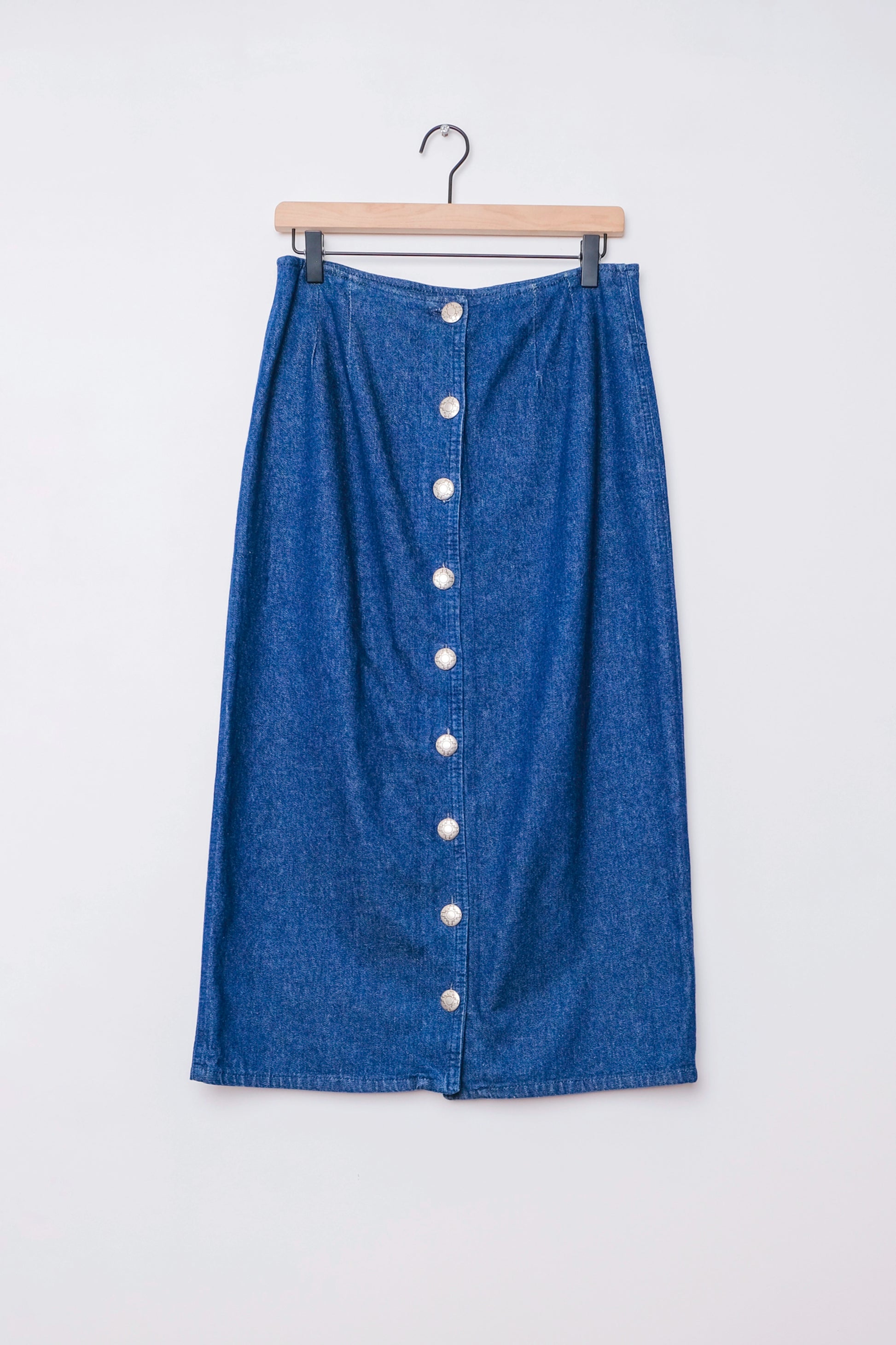 Pioneer Wear Dark Blue Denim Pencil Midi Skirt Southwest 90's, US 10