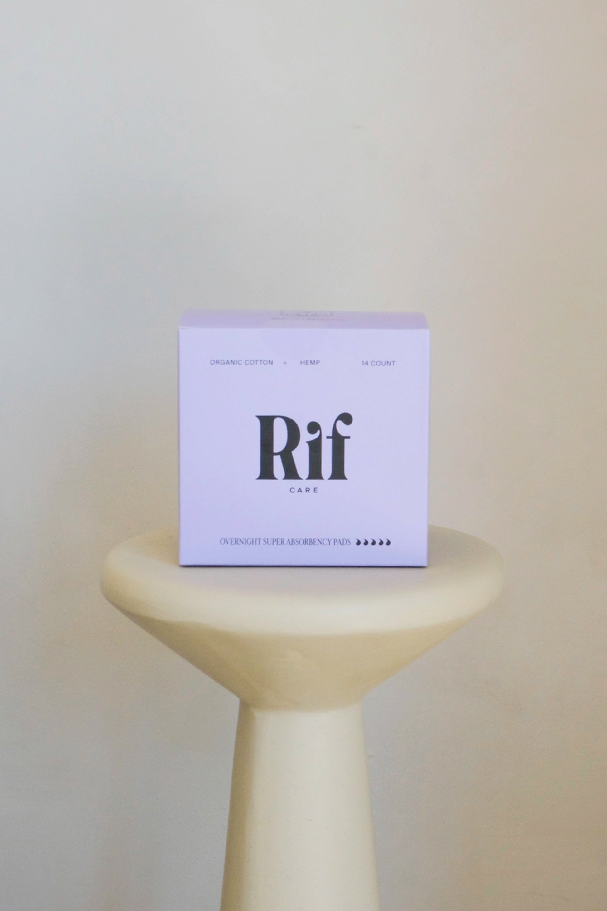 Rif Care Overnight Hemp/Organic Cotton Biodegradable Pads (14 per box)